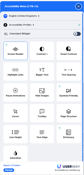 Userway is available across most of our website but you won't find it when you log into Online Services or when you apply to open a savings account yet. We're looking to roll this out in the near future.